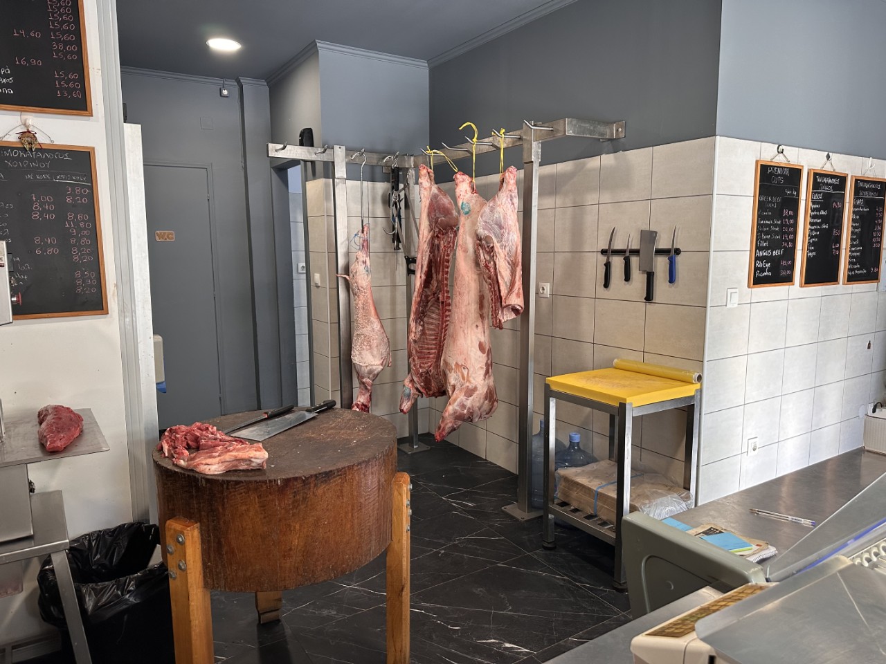 Bij de supermarkt vraagt Marianne of ze nog de boodschappen bij de Just afleveren. Geen probleem natuurlijk. We kopen ruim in en Daniel rijdt met de bestelauto met chauffeur naar de Just. Wij wandelen nog even langs de slager voor wat vlees voor de BBQ. Het is nog een ouderwetse slager waar twee halve koeien hangen en het rundergehakt vers gedraaid wordt. Bij de bakker nemen we behalve brood ook lekkere baklava mee.