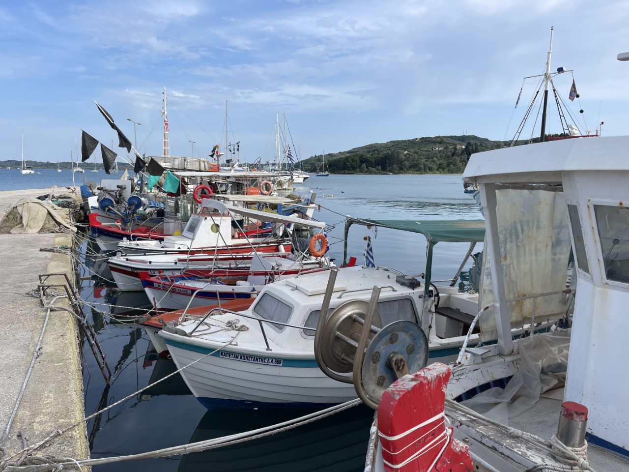 Na een goede nachtrust en ons ontbijtje zetten we koers naar Petriti. Ergens halverwege ronden we het zuidelijkste puntje van Corfu en varen we de laatste mijlen weer noordelijk. Onderweg hebben we gebeld met twee watersportwinkels of ze een morsekabel kunnen leveren. Bij alle twee hebben ze deze niet op voorraad. Morgen worden we terug gebeld voor de prijs en levertijd.