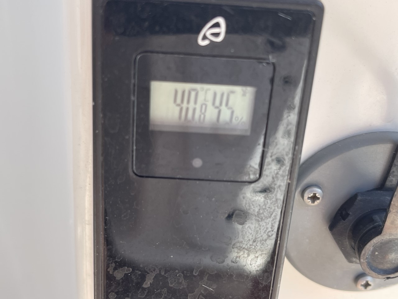 Nog voor het ontbijt spuiten en borstelen we de Just zoutloos schoon. Nog even de watertank vullen, want met het warme weer wordt de buitendouche regelmatig gebruikt voor afkoeling. De supermarkt is om 08:30 uur nog gesloten, dus we ontbijten met een restje oud brood en Griekse yoghurt.