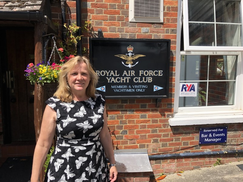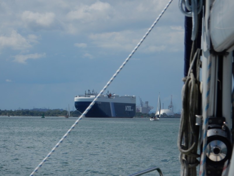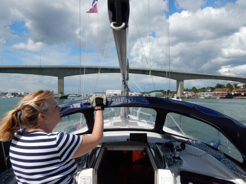 Zo slecht als het gisteren was, zo mooi weer is het vandaag. Na ons zondagse gekookte eitje bij het ontbijt, hebben we een beetje naar de bedrijvigheid in de haven gekeken. Er waren wedstrijden en er vaarden veel mooie boten met volledig uitgeruste crew uit. Wij moesten ook verkassen, omdat we wat later wilden vertrekken en de box leeg moest zijn voor een terugkerende zeilboot. Nu lagen we nog dichterbij de River Hamble en hadden een nog beter uitzicht. Rond 12:30 uur gingen we ons omkleden om op chique te gaan lunchen bij de Yachtclub van de Royal Air Force. We hadden op een vol restaurant/mess gerekend, maar we waren de enigen. Wel was er een mooie gereserveerde tafel. Het menu wat op internet stond, klopte ook niet. Er was een keus uit wat lichte lunch gerechtjes of Sunday pork roast of beef roast, wat we dan maar bestelde. Een prima keus, vooral omdat Marianne toch al lang eens een Engelse Sunday roast wilde proberen. We namen een lekker dessert na. Terug op de Just hebben we snel ons zeilkloffie weer aangetrokken en de lijntjes los voor een kort tochtje naar Southampton. De havenmeester stond al te wachten en we kregen een kloteplaats aangewezen. Een langssteiger direct aan de rivier, waar constant snelle bootjes langsvaren met de nodige golfslag. Op het havenkantoor heb ik even lopen klagen, dat het een “balls place” was. Ik wist de Engelse vertaling niet van een “kloteplaats”, maar ik werd begrepen en we kregen een luxe box. Na een klein wandelingetje was het tijd voor een beetje saaie Formule 1 race in Canada.
