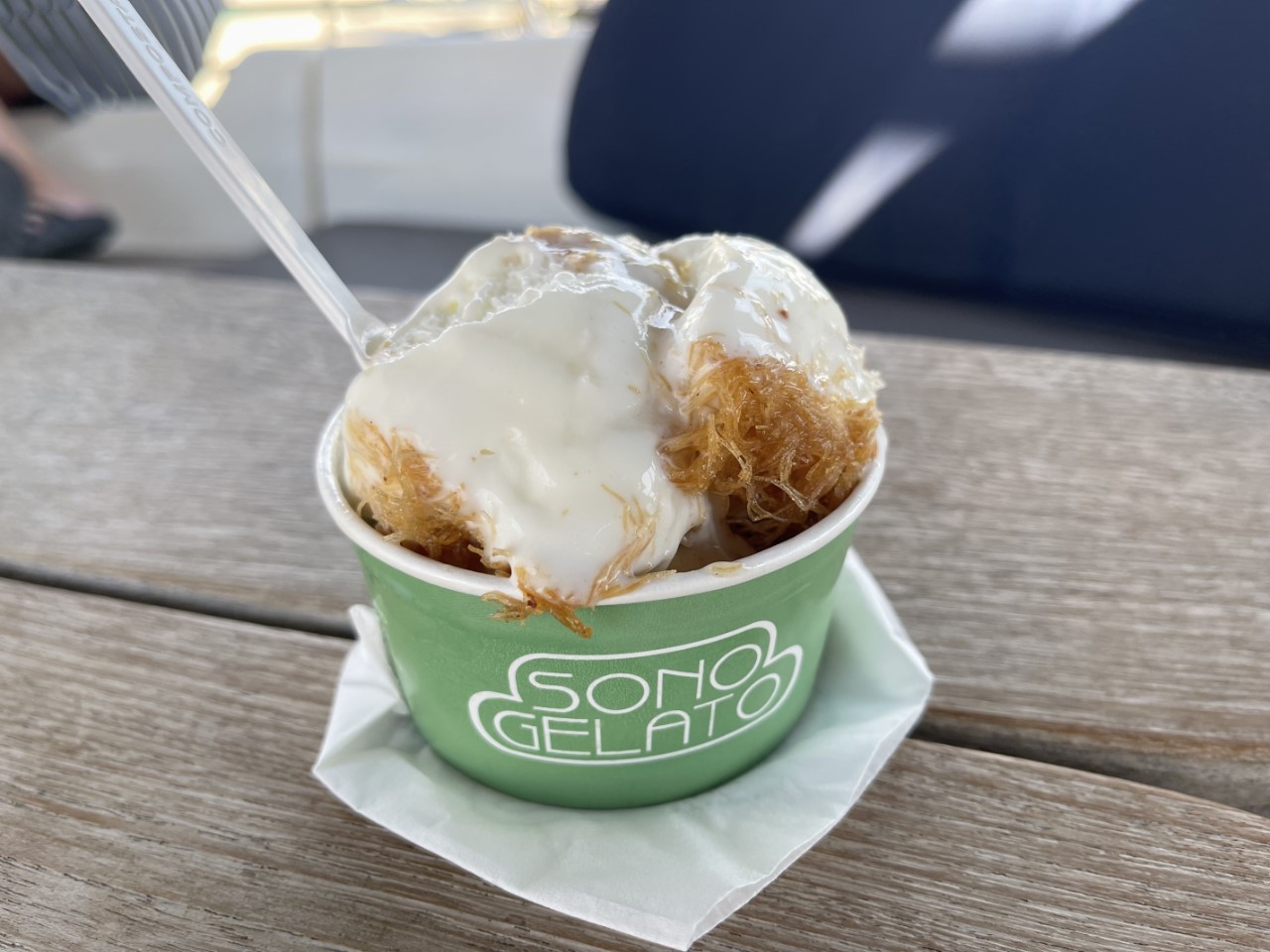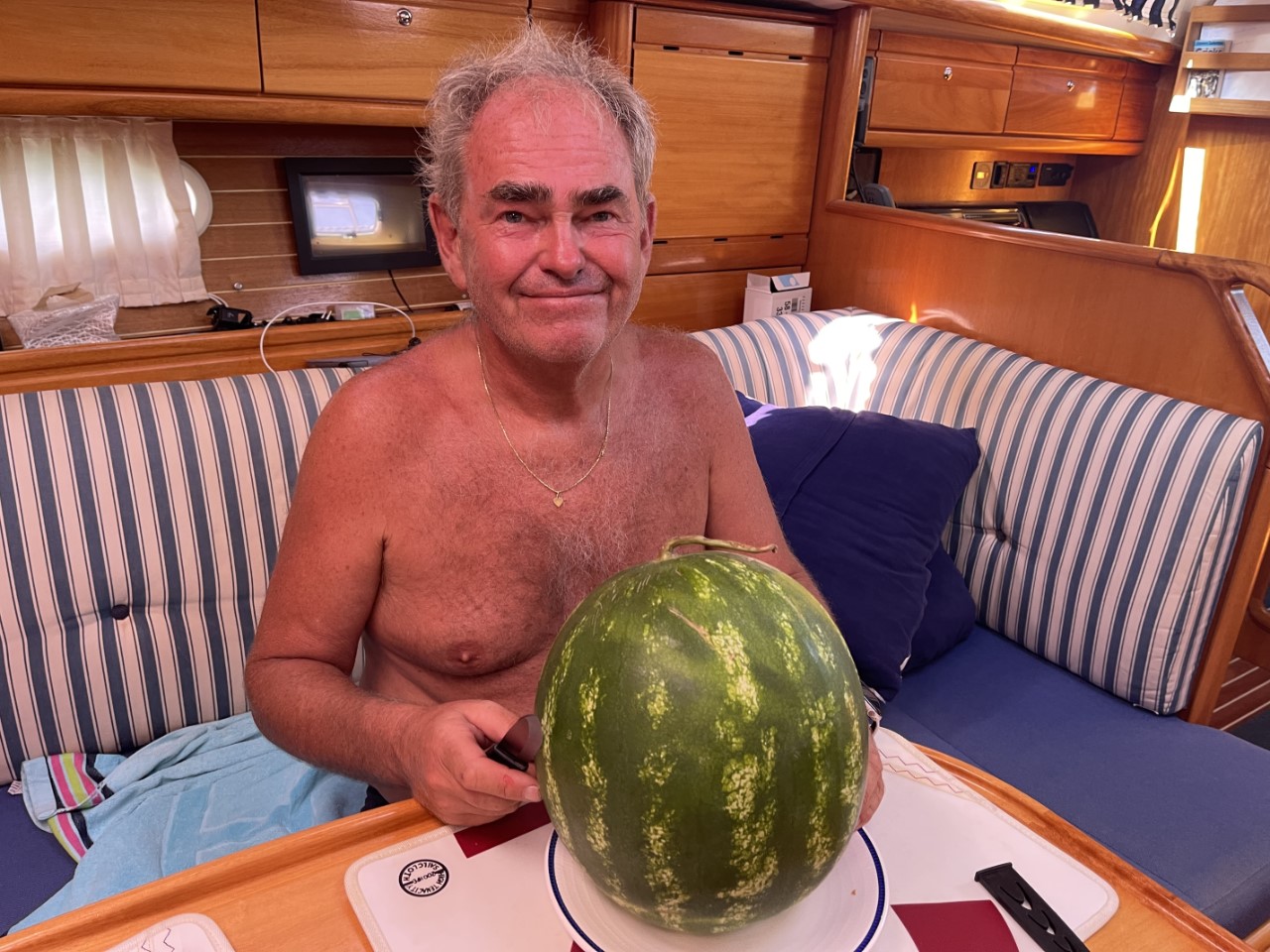 Nog even boodschappen halen en we zijn klaar voor vertrek, maar eerst nog een ijsje. Helaas loopt het verder niet zo gesmeerd. Ons anker zit op de bodem vast in een ketting van de charter-mooringlijnen. De ankerlier heeft het daarbij iets te zwaar te verduren gehad en die zegt nu doe het zelf maar. Of ik het kan repareren is nog een vraagteken. Morgen ga ik dat verder onderzoeken. Na ongeveer anderhalf uur komt er een bootje met een duiker en een halfuurtje later is het anker los van ketting en bodem.