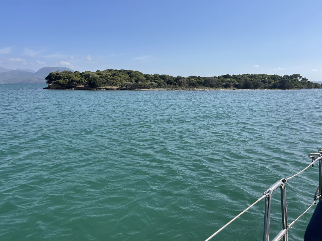 We zetten koers naar de ankerplek achter de haven van Preveza, waar het best een drukke bedoening is. Wij willen een ondiep plekje, omdat we het anker handmatig moeten ophalen. We doen drie pogingen, maar we hebben steeds geen goede grip. We hebben even overwogen om naar het ankerplekje bij Aktio aan de overkant te gaan, maar de wind was ook inmiddels flink toegenomen. Marianne vindt het geen optie en we zetten koers naar de Buffalo Bay. Dat is maar 3 meter diep en goed beschut tegen de huidige krachtige wind.