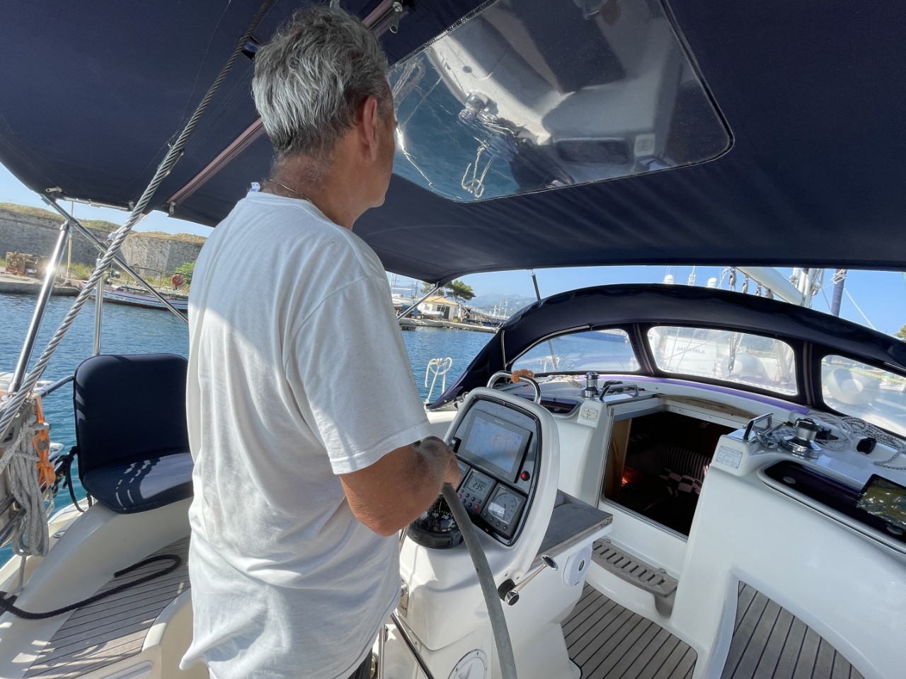 Met een helder blauwe lucht en nagenoeg windstil vertrekken we uit Preveza. We zijn een klein beetje bezorgd of ons anker zonder extra anker uit het water zal komen, gelukkig gaat alles perfect.