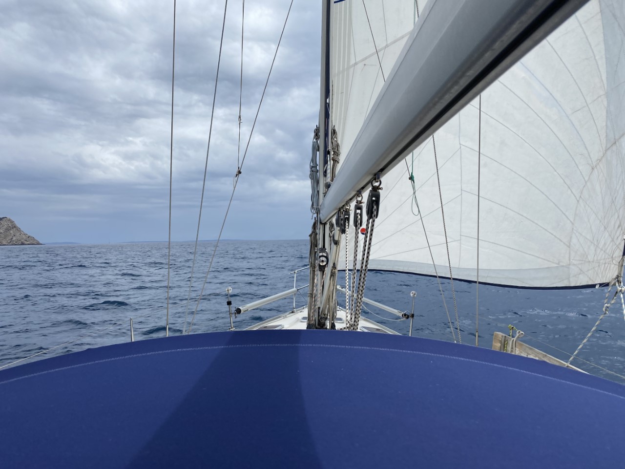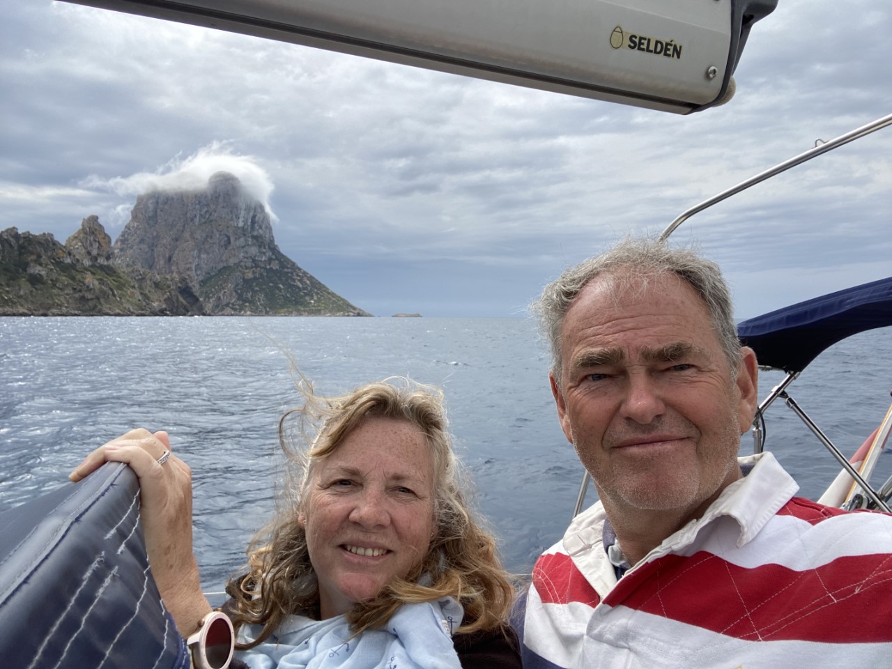 Met een volle tank zetten we koers naar Cala Tarida, maar het ging lekker en we waren daar snel. Dus hebben we toch gekozen om iets verder te varen. Met het fokje uit zijn we naar Cala Yondal gevaren. Na even zoeken hebben we een heel ruim ankerplekje uitgezocht voor de nacht. En in deze Cala waren we niet de enige, niet zo druk als we vorig jaar hebben meegemaakt, maar er zijn toch 15 andere zeilboten.
