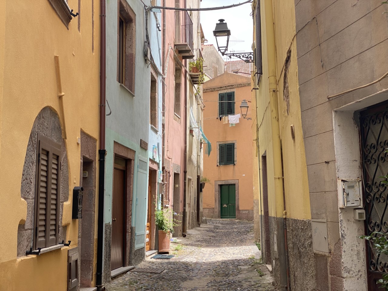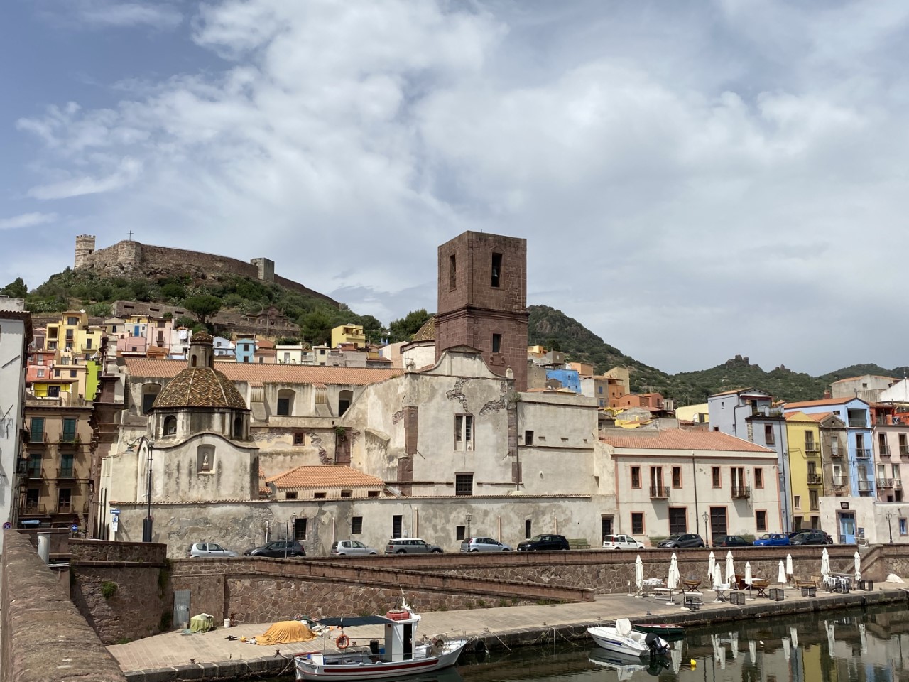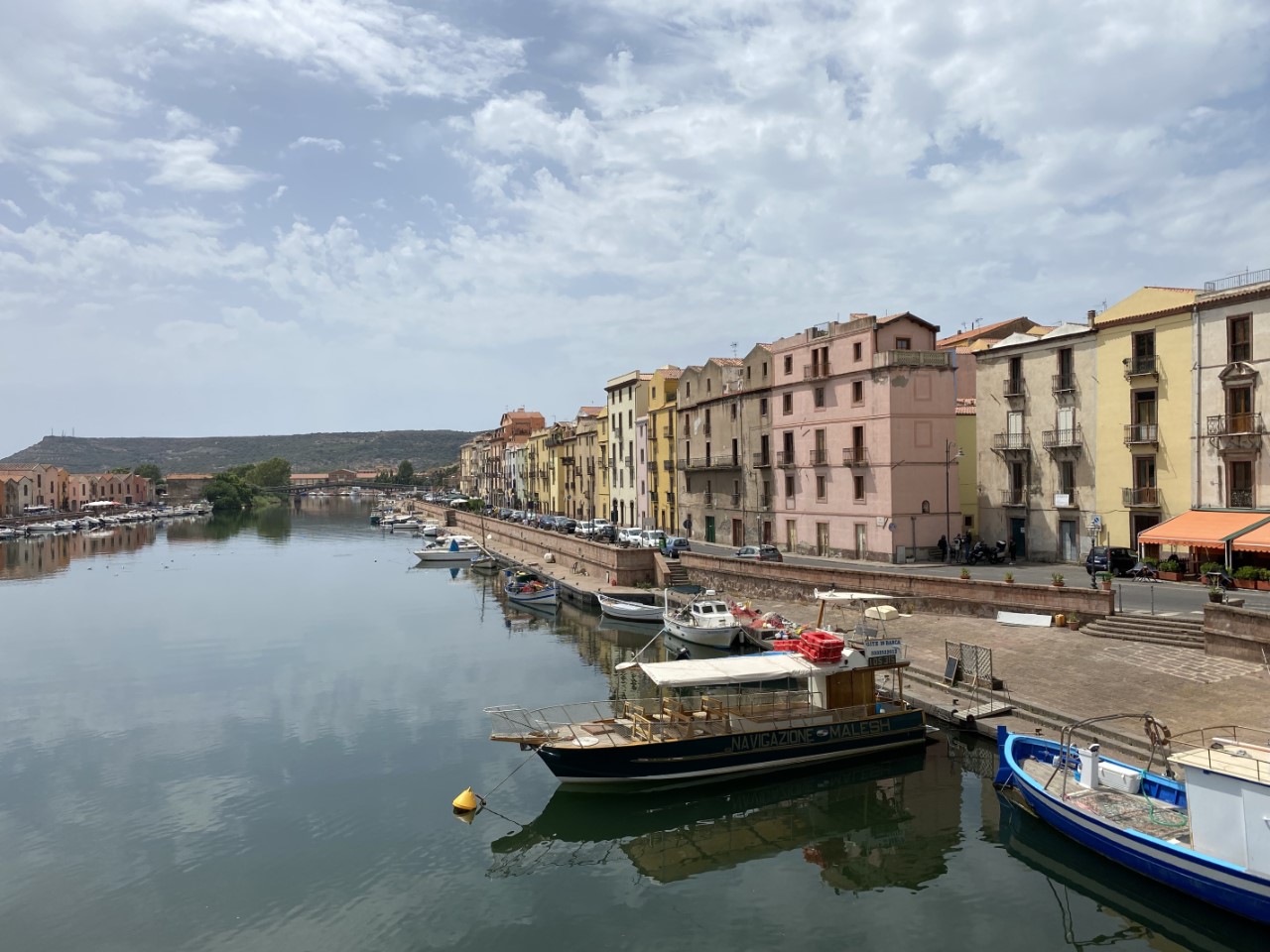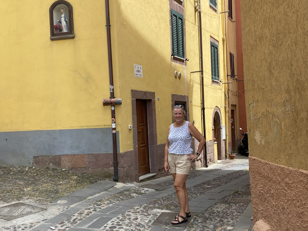 Rond 14:00 uur gaan we op pad naar het stadje. Achteraf veel te vroeg in verband met de hitte. Bosa is een leuk plaatsje met allemaal gekleurde oude huisjes, heel hoog en smalle straatjes. Morgenochtend gaan we zeker nog even terug. Wij lopen nu te veel te puffen. Terug op de Just is er gelukkig een verkoelend windje.