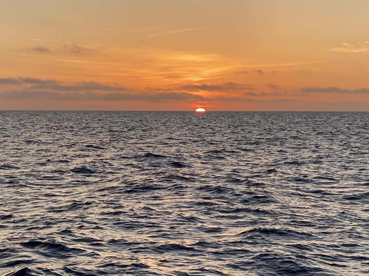We zijn op onderzoek gegaan en onder het bed bleek 1 van de accu’s van de boegschroef en ankerlier flink heet te zijn. Er kwamen zelfs rookwolken uit de accu. Ik heb gelijk de accukabel verwijderd en zo het probleem opgelost. Gelukkig waren we er snel bij, anders had het ernstiger kunnen aflopen. Dan komt er een mooie halve wind en kunnen de zeilen uit. Met een gangetje van 5,7 knoop gingen we door het water. De aankomsttijd schoot naar beneden, maar dat was jammer genoeg, maar voor een paar uur. Rond 14:00 uur zagen we bij dit heldere weer de kustlijn van Ibiza, die we uiteindelijk pas 10 uur later zouden bereiken.