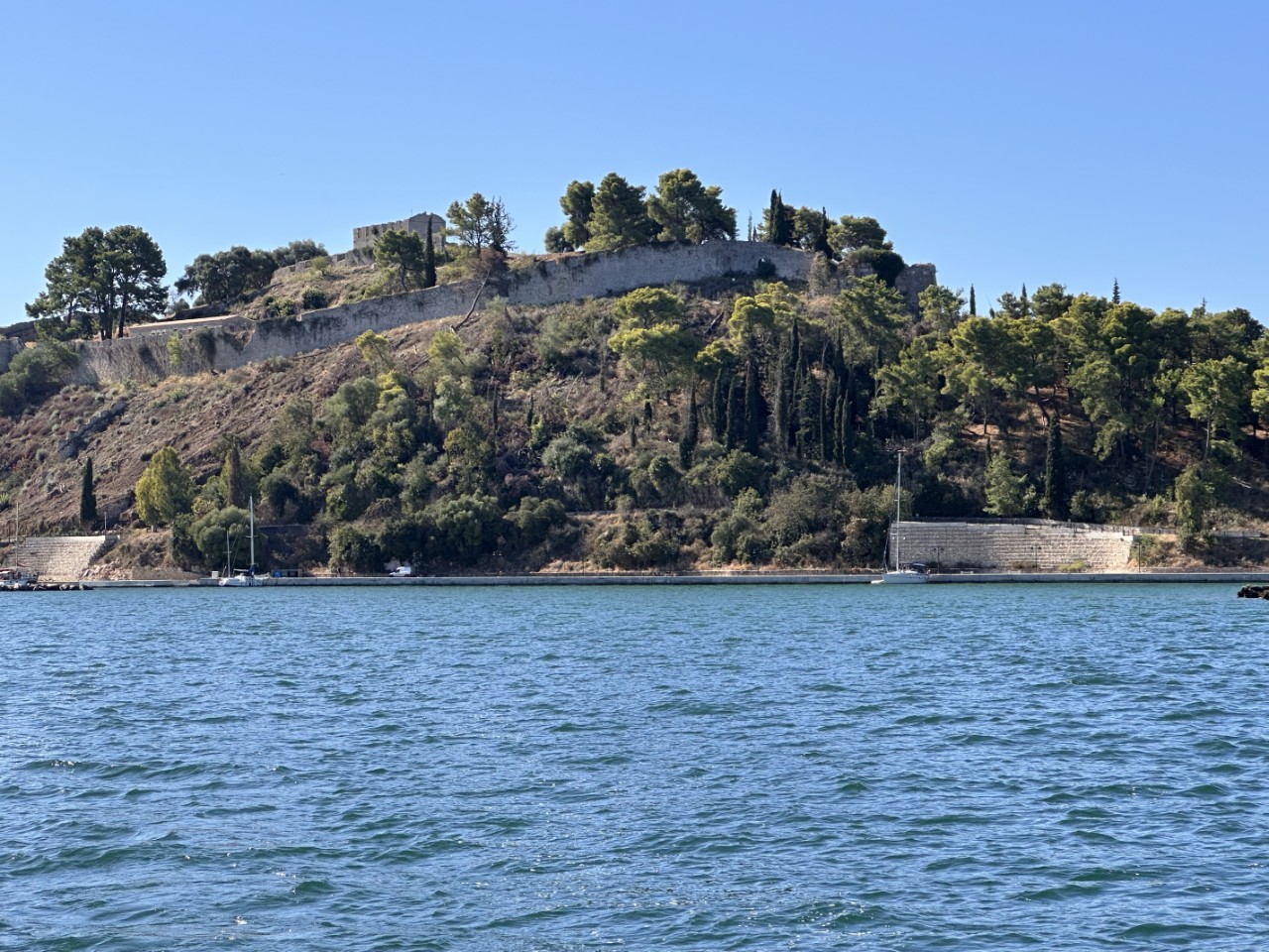 Dit is onze laatste volle dag voor dit seizoen op het water. Na het ontbijt pakken we direct de meeste spullen in de tassen, die mee naar huis gaan. Na dit klusje hebben we de kade van Vonitsa achter ons gelaten en varen richting Preveza. Er staat geen zuchtje wind en met een heel laag toerental dobberen we een beetje naar de juiste richting.