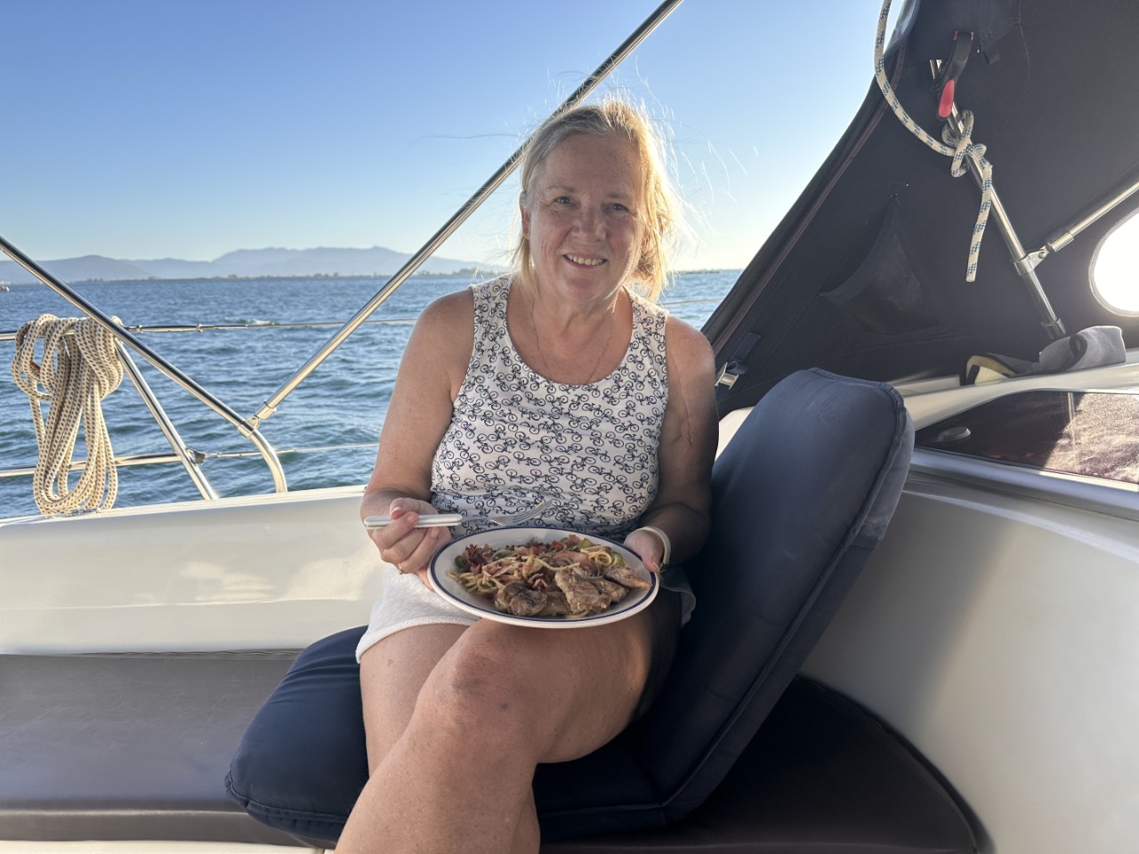 Terwijl ik naar de formule-1 race kijk, loopt Marianne alle kastjes nog even na en bereidt ons avondmaaltje een beetje voor.