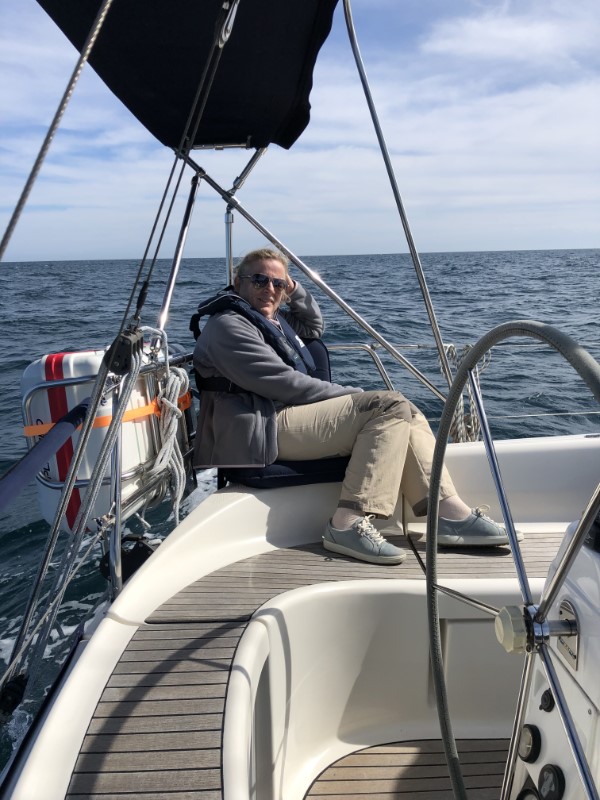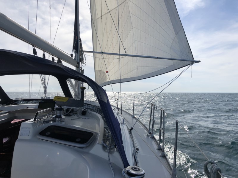 Vanmorgen was het een drukke boel op de kade. Een hele invasie van veteranen met de nodige voertuigen uit de tweede wereldoorlog. En wij zaten lekker voor het eerst in de kuip te ontbijten. We hadden nog tijd genoeg vanwege ons late vertrek. We gingen dus ook nog wat winkelen en langs de boulevard en natuurlijk die oude legervoertuigen van dichtbij bekijken. Zo, eindelijk is het 12:00 uur, nog een half uurtje voor vertrek. Alles een beetje opruimen en nu begon het bij Marianne te kriebelen en ze wilde vertrekken. We hadden direct de stroming mee met de wetenschap dat we dan veel te vroeg bij Portland Bill zouden zijn. Alle Pilots en de Reeds geven waarschuwingen voor hevige overfalls en gek lopende stromingen. Er wordt geschreven dat het daar het gevaarlijkste stukje van het kanaal is. Wij kwamen op het goede tij aan en door het perfecte weer waren we er met weinig hoge golven. Bij dit weertype kan je vlak langs de rotsen varen. Zo, dat gevaarlijke stuk hebben we gehad. We hebben het grootzeil gestreken en de fok uitgeboomd. We varen nu voor de wind rechtstreeks naar Torquay. We hadden verwacht in het donker aan te komen, maar dat viel mee. Op de kaartplotter zagen we, dat het rond 20:00 uur zal zijn. 5 minuutjes later draaiden we de box in. Snel even wat eten en ons melden bij het havenkantoor. We plakten er nog een wandeling door Torquay achteraan. Het was vanwege de zaterdag in alle Pubs en op straat gezellig. Bij ons ging het lampje uit en we gingen weer naar de Just, die ook in de haven nog flink aan het deinen was.