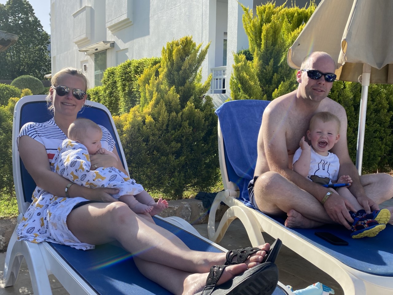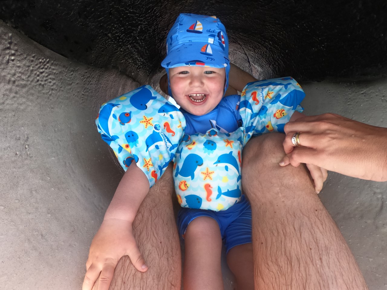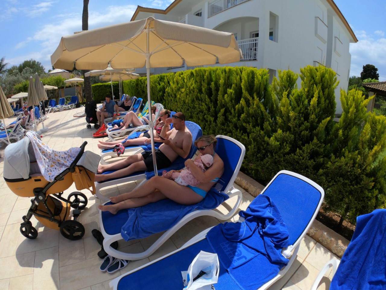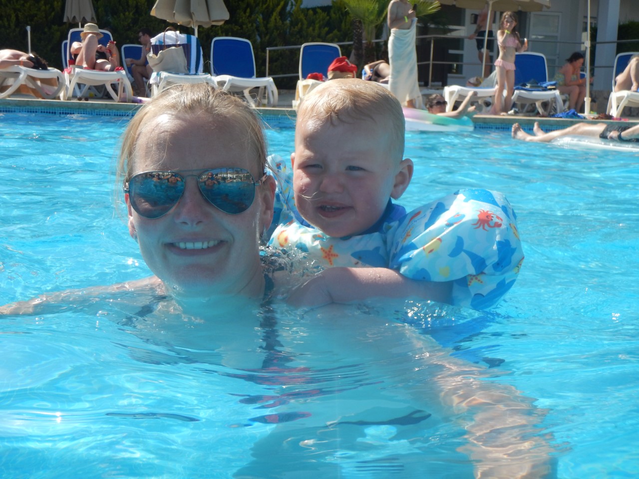 De Kamer is gereed, we hebben een mooie kamer en nadat we alles een beetje hadden ingericht zijn we gaan lunchen. In de morgen viel er nog een klein buitje, maar in de middag toen we naar het zwembad gingen was de zon volop aanwezig. Met Marnix hebben we in het water gespeeld en hij ging vaak van de waterglijbaan. Marianne zat lekker te knuffelen met Mariëlle voor en na haar flesje.