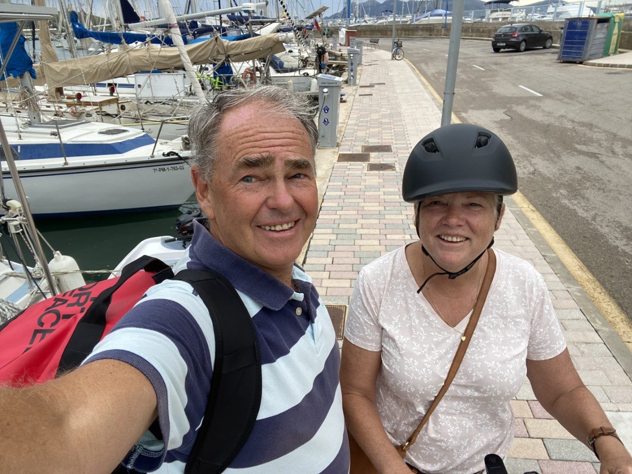 Vanmorgen na het ontbijt hebben we de tas ingepakt voor 2 dagen hotel. We hebben een grote tas en die ging helemaal vol, ruim 20 kilo bagage voor die 2 dagen. Rond 10 uur waren we klaar en zijn rustig richting hotel gewandeld, Marianne op de step en ik met de rugtas. De kamer was pas na 12 uur gereed, maar we mochten alles stallen op de kamer van Mark en Marion. Dan maar even een bakkie koffie.
