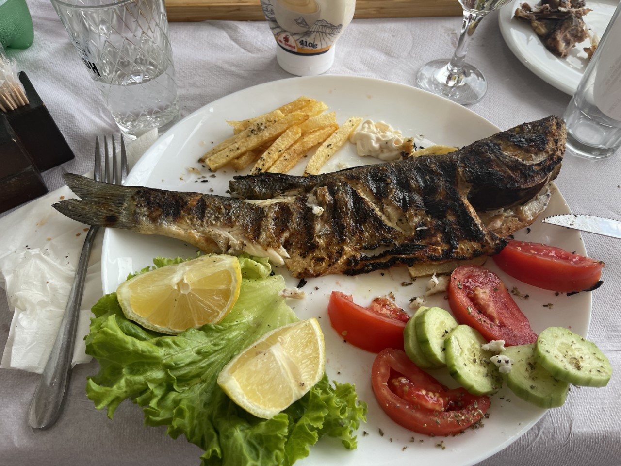 Tegen de avond hebben we een restaurantje lopen zoeken, maar uiteindelijk komen we toch weer terecht bij Symposio, waar de zeebaars en de lamskoteletjes heel lekker zijn. Petra en Mike van de Waaibaai zitten er ook om voetbal te kijken, wat wij een beetje aan ons voorbij laten gaan. Na een wandeling over de boulevard en door de smalle straatjes met restaurantjes, hebben we het kuipje opgezocht.
