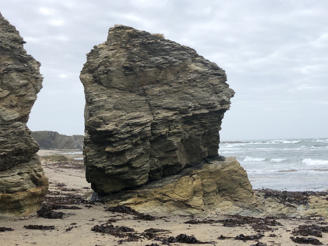 We waren vroeg uit de veren. We willen naar de zoutvelden op de fiets. Maar net toen we de fietsen uit de Just wilden halen, ja hoor, begon het weer te regenen. En aan de donkere lucht te zien zou dat wel even aanhouden. We hadden gerekend op droog weer, want volgens de voorspellingen ging het pas om 15:00 uur regenen. Een uurtje later was het wel droog, maar nog steeds dreigend. Wat doen we? Eerst maar even boodschappen halen. We vonden het inmiddels te laat om ruim 20 kilometer te gaan fietsen. Dus gingen we maar aan de wandel, deels via het strand en rotsen en een stuk op de weg langs mooie strandhuizen. Volgens ons worden die alleen in de zomer gebruikt. We kwamen bij een trap, die leidde naar een heel klein strandje tussen de rotsen, heel erg mooi. Uiteindelijk zijn we droog bij de Just aangekomen. Marianne ging schilderen en ik keek maar voor de verandering een filmpje. De voorspellingen klopten nu wel. De wind ging weer naar ruim 30 knopen en het regende weer. De bedoeling was om morgen rond 06:30 uur te vertrekken (in verband met de drempel in Piriac) naar Arzal. Daarvoor hebben we gisteren een doorvaart door de sluis gereserveerd om 14:00 uur. We moeten dan 7 uur overbruggen voor een tochtje van nog geen 16 mijl met een windje in de rug van ruim 30 knopen. Marianne zag daar een beetje tegenop en ik ook wel. Maar er was nog een optie de sluis van 20:00 uur en dan kunnen we wel vertrekken uit de haven wanneer we willen en met veel minder wind bij de sluis. En nog een voordeel, we kunnen uitslapen.