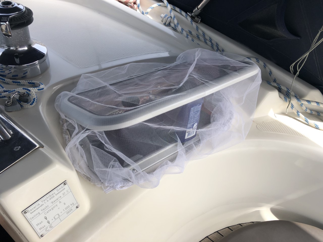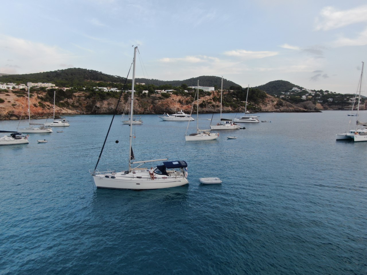 Het was een betere nacht en ik heb goed geslapen. Wel ga ik iedere twee uur even kijken hoe de Just er bij ligt. Het eerste muggenhorretje had ik met klittenband vastgeplakt en dat was geen goed idee. Er zaten allemaal lijmresten en die waren moeilijk te verwijderen. Op de whatsapp staat dat de Tiramisu een horrornacht heeft gehad vanwege swell in de baai van San Miquel. Ze komen nu ook naar Cala Tarida.