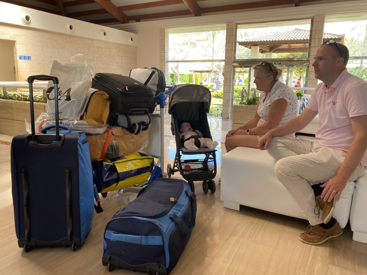 Na een laatste drankje (water) op de kamer verplaatsen we naar de lobby. Daar wachten we op de bus. Even na 12:00 uur is het zo ver. Afscheid nemen en nog een paar laatste knuffels en ze stappen de bus in. Nog even zwaaien en weg zijn ze, na een hele leuke week samen. Wij stiefelen terug naar het bijbootje en zoeken de Just weer op.