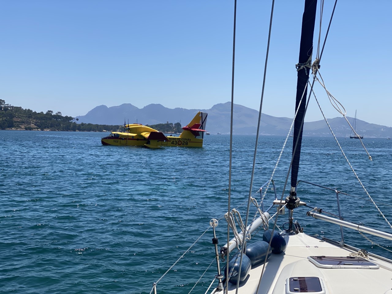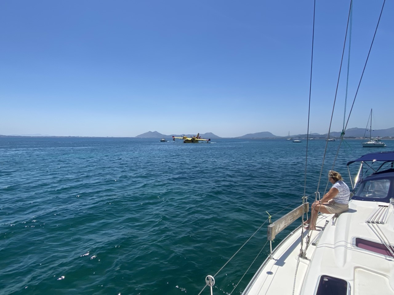 We zaten allebei in onze gedachten over de leuke momenten van afgelopen week, als er 2 blusvliegtuigen laag over de Just vliegen. Marianne heeft ergens gelezen dat hier een landingsbaan is voor blusvliegtuigen. Nu wachten we af of dat ook gaat gebeuren. Na een paar rondjes laag over het water komt er eentje heel laag aanvliegen en landt op het water. Wat een spektakel. Niet veel later komt ook nummer 2 landen. Het is erg leuk om mee te maken.