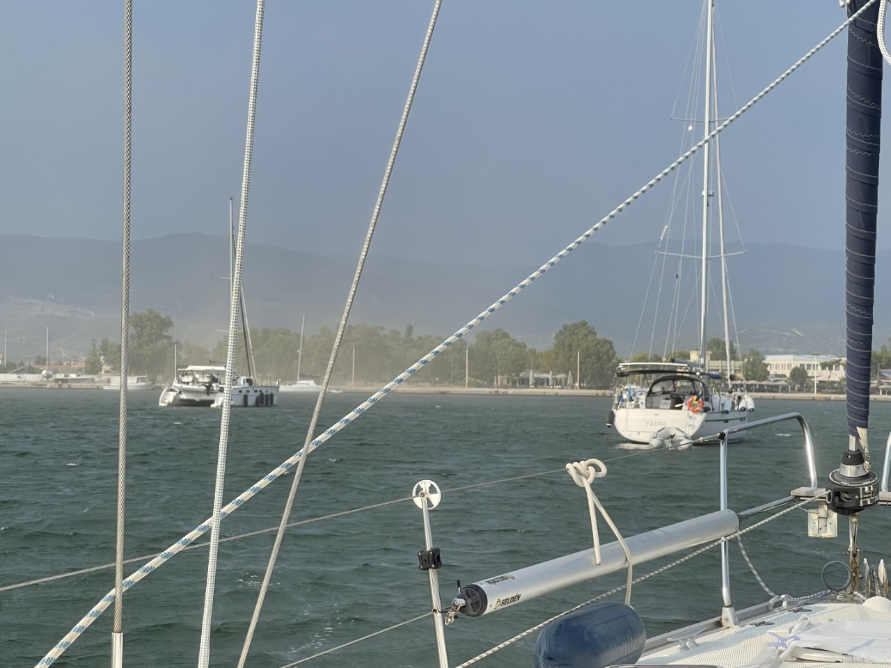 Terug op de Just hebben we gelijk verkoeling gezocht in het water en onder de douche en dat hebben we ieder uur herhaald. We lezen iets over Mesolongi en hun strijd tegen de Turken. Na 3x een beleg (1821 tot 1826) werden 3.000 inwoners gedood en hun hoofden afgehakt en tentoongesteld. Daarna kregen de Grieken steun voor hun onafhankelijkheid.