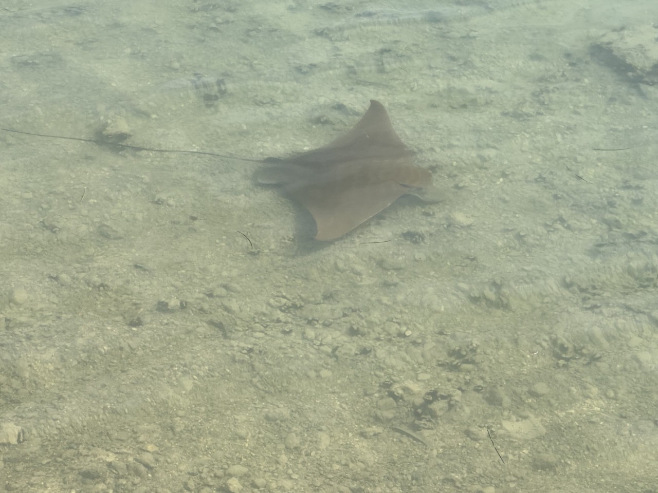 We worden wakker op een spiegelgladde en rustige baai. Wat een verschil met een paar uur geleden. Wij gaan met het bijbootje op expeditie om langs de waterkant te struinen of we misschien ons schaduwlapje kunnen terug vinden. Helaas was de zoektocht vergeefs. We bespreken de toestand nog even met onze Franse buren. Zij staan op de kant aan hun buitenboordmotortje te sleutelen, dat bij hun wel nog op hun bijbootje had gezeten en flink onderwater terecht was gekomen.
