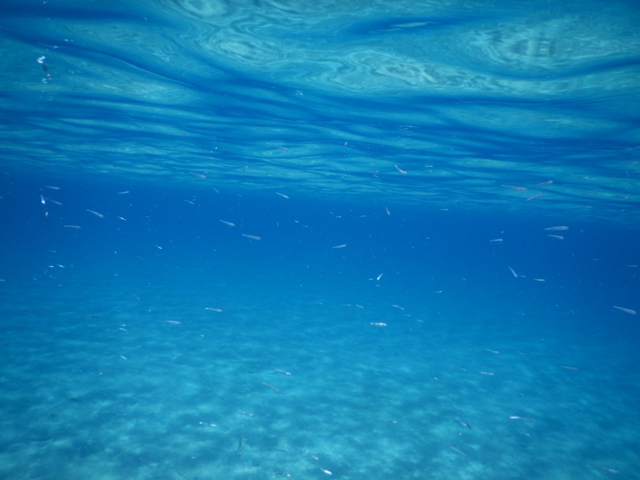Niet veel later zwemmen we naar het strandje. We wandelen daar wat rond en we zitten aan de waterlijn om de Just vanaf deze kant te bekijken. Het onderwaterwereldje is hier prachtig. We zwemmen door duizenden neon tetra’s, de standaard blauwe visjes en ik zie zelfs een kleine rog fladderen op de bodem.