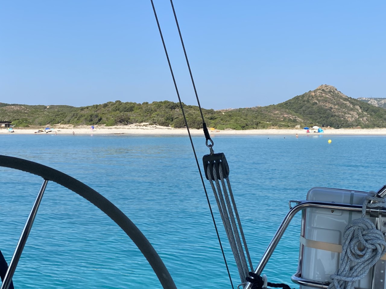 Zo… we liggen op ongeveer 200 meter van het strand. Dalijk nog maar even het anker controleren, er wacht nog een broodje en eitje op ons. Ik neem direct na het ontbijt een duik in het heerlijke water en zie dat het anker mooi ingegraven ligt.